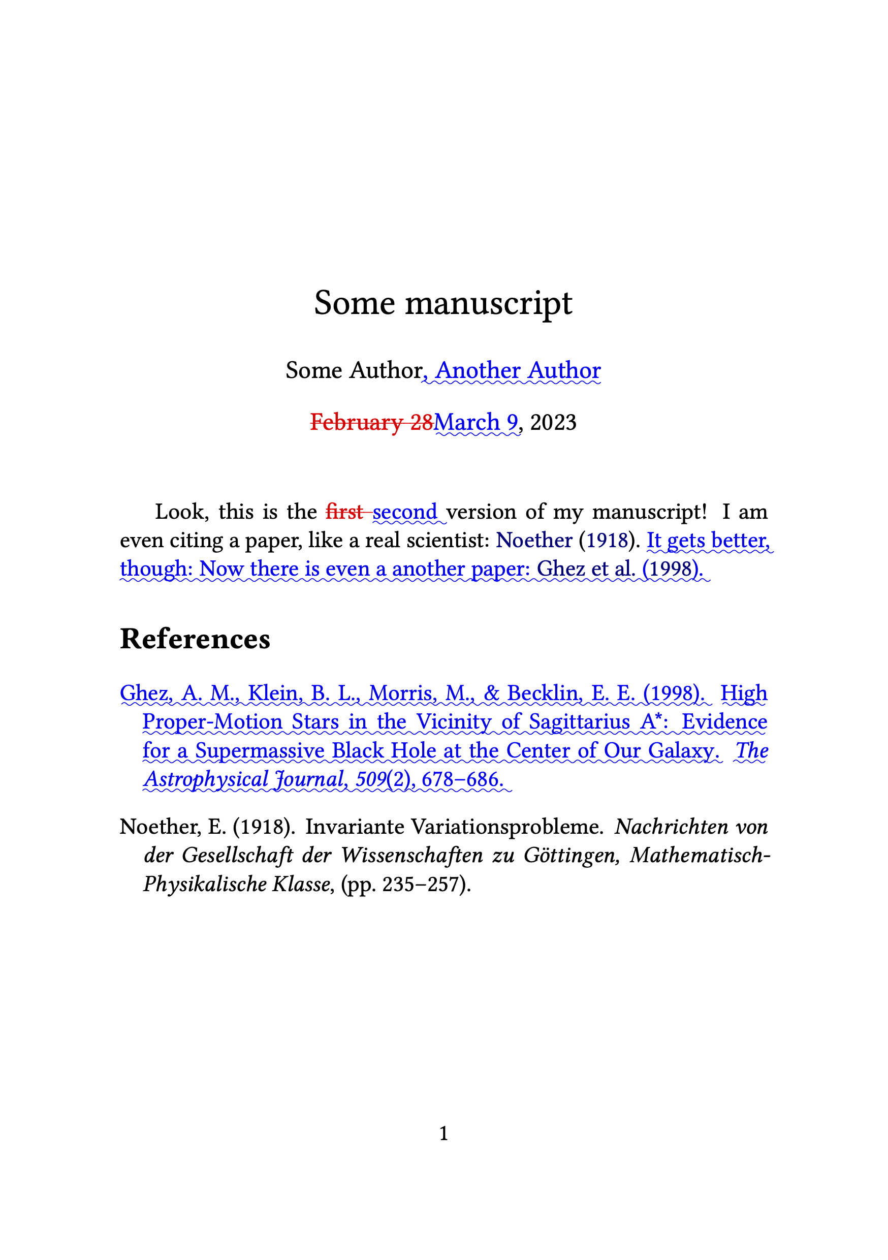 This means that if you are revising your manuscript for a resubmission, you can just edit away without marking any changes yourself, and when you think you are done, run a single command and get your annotated PDF with everything that is different from the original submission / commit.